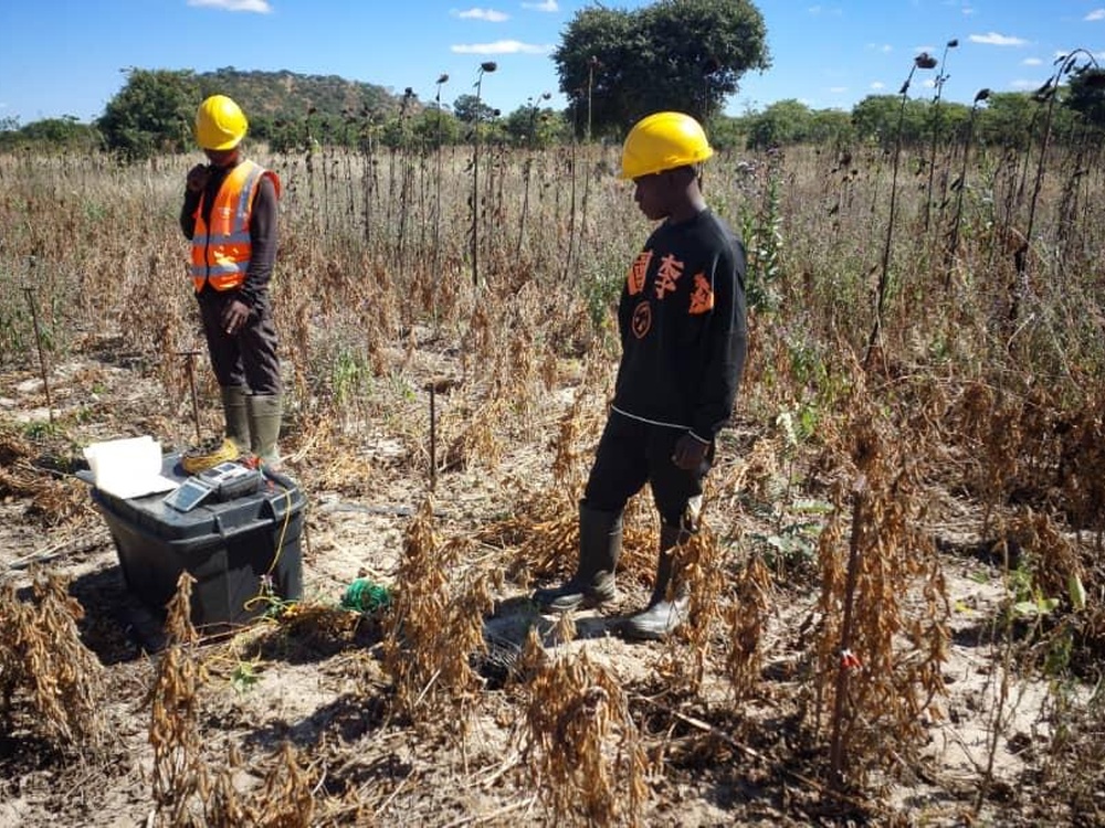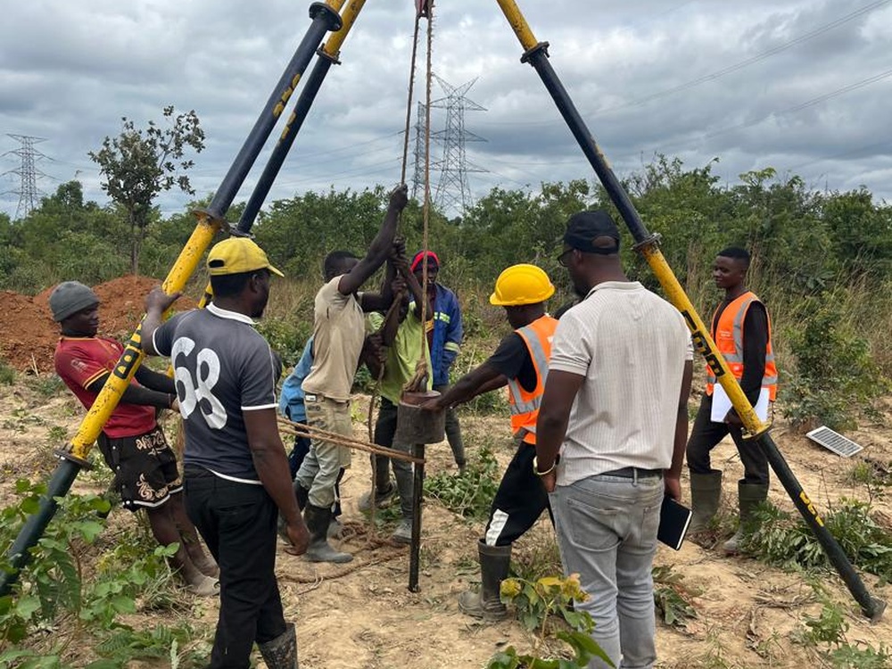 Engineering team conducting preliminary site evaluation and field investigations in Mumbwa
